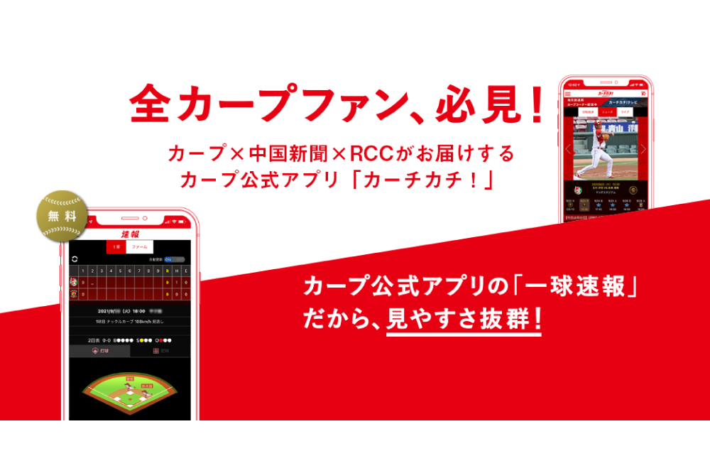 カープ情報がたっぷり詰まったカープ公式アプリ。一球速報、選手インタビューなど。